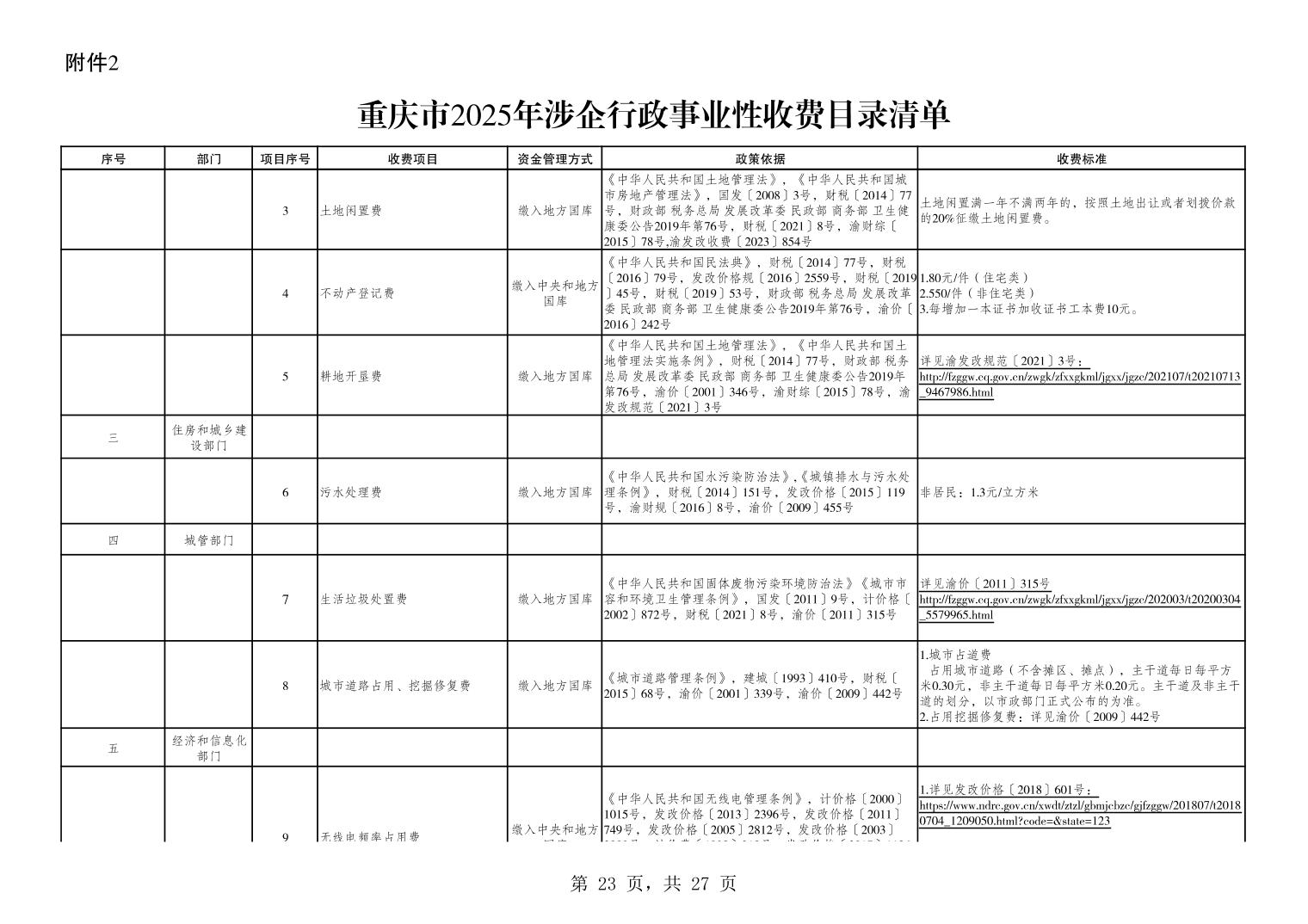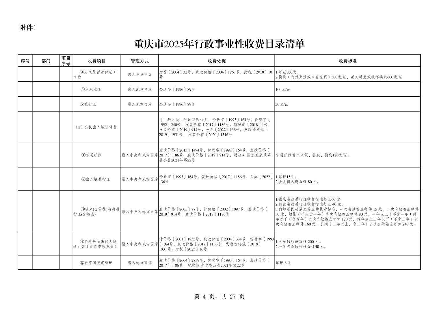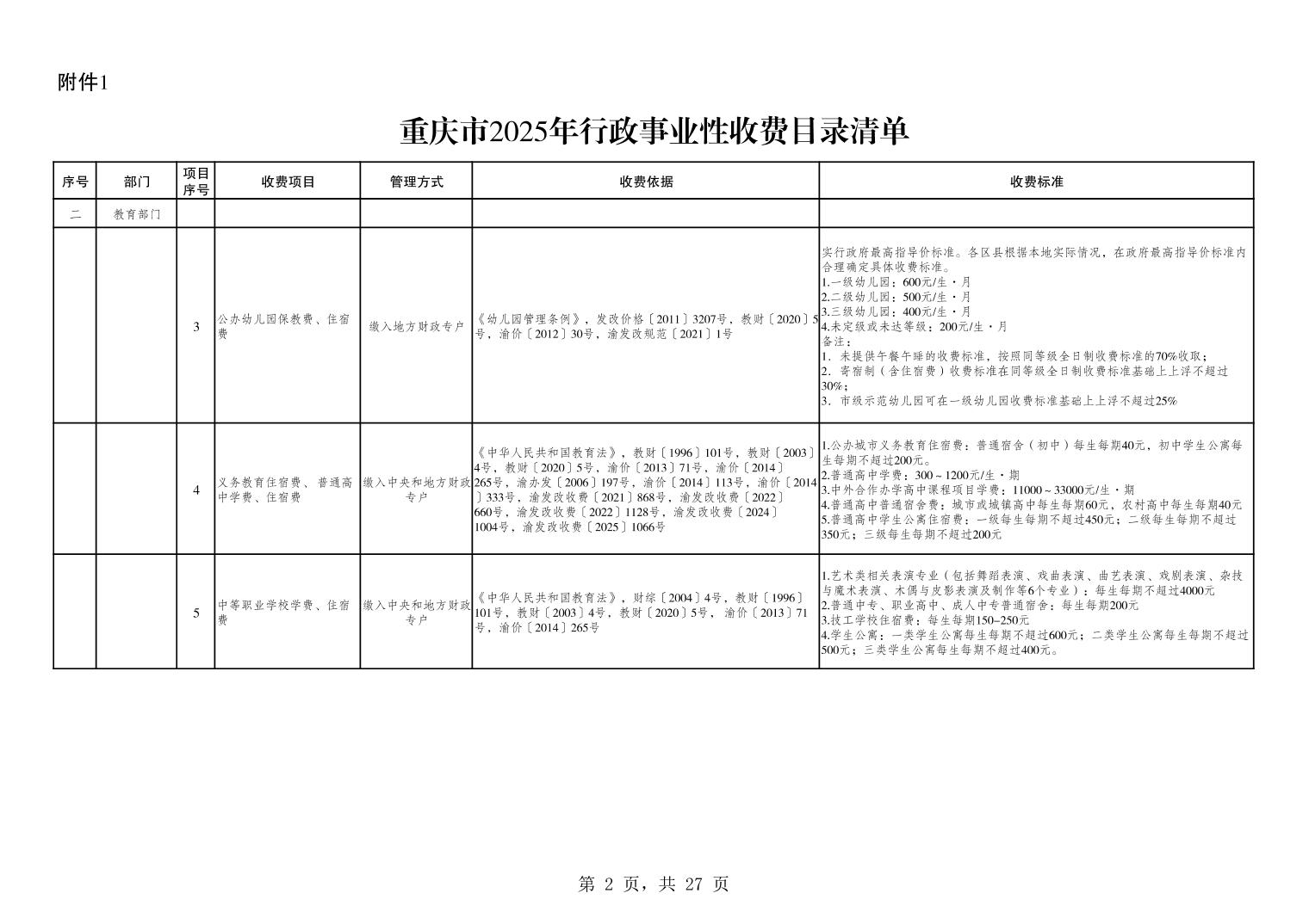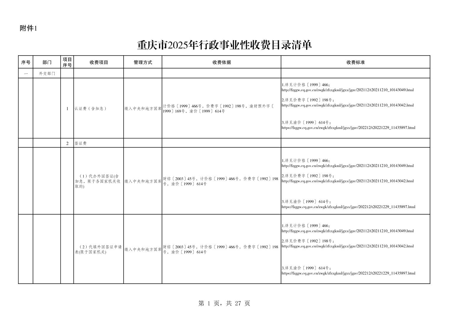 重庆市2025年行政事业性收费目录清单.xls关于公布2025年行政事业性收费目录清单的公告.pdf