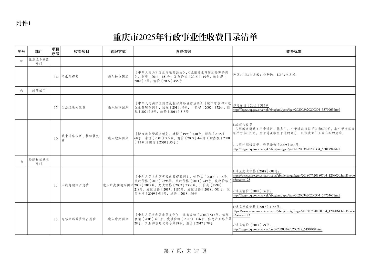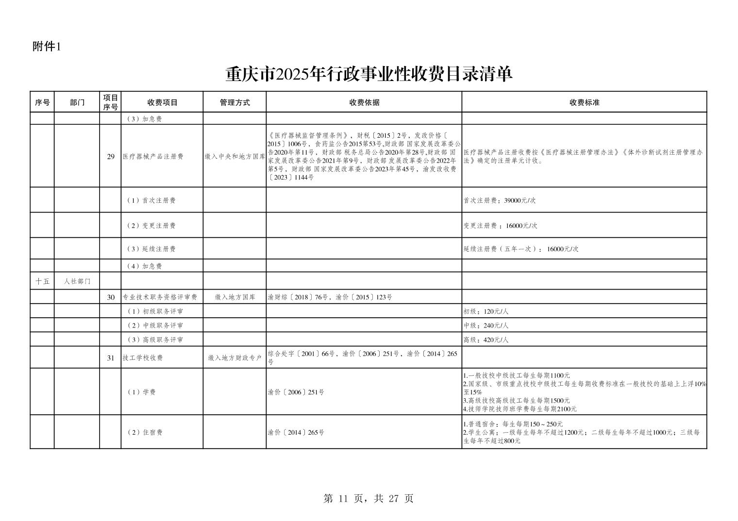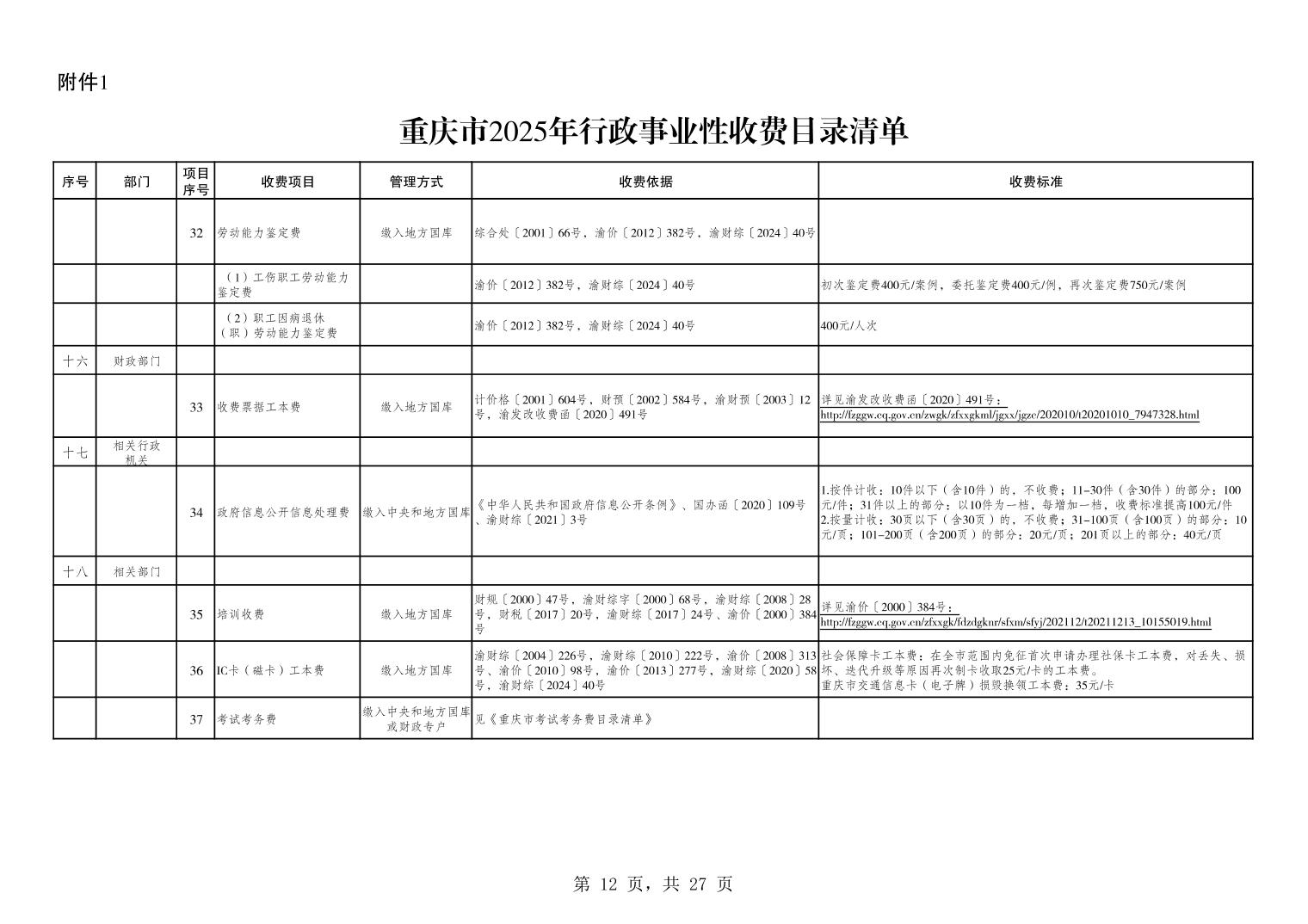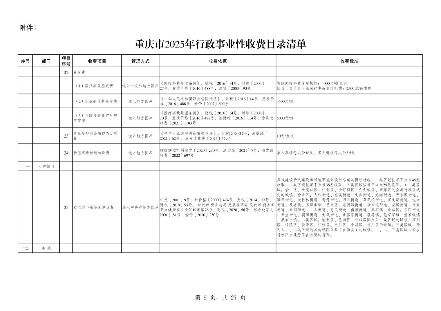 重庆市2025年行政事业性收费目录清单.xls关于公布2025年行政事业性收费目录清单的公告.pdf