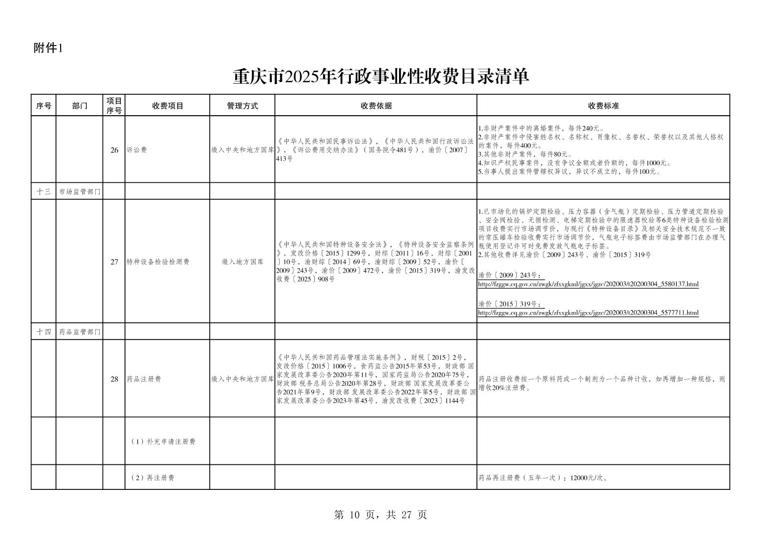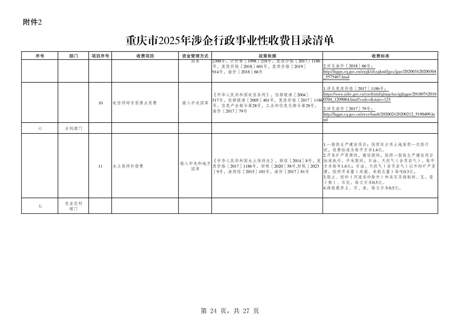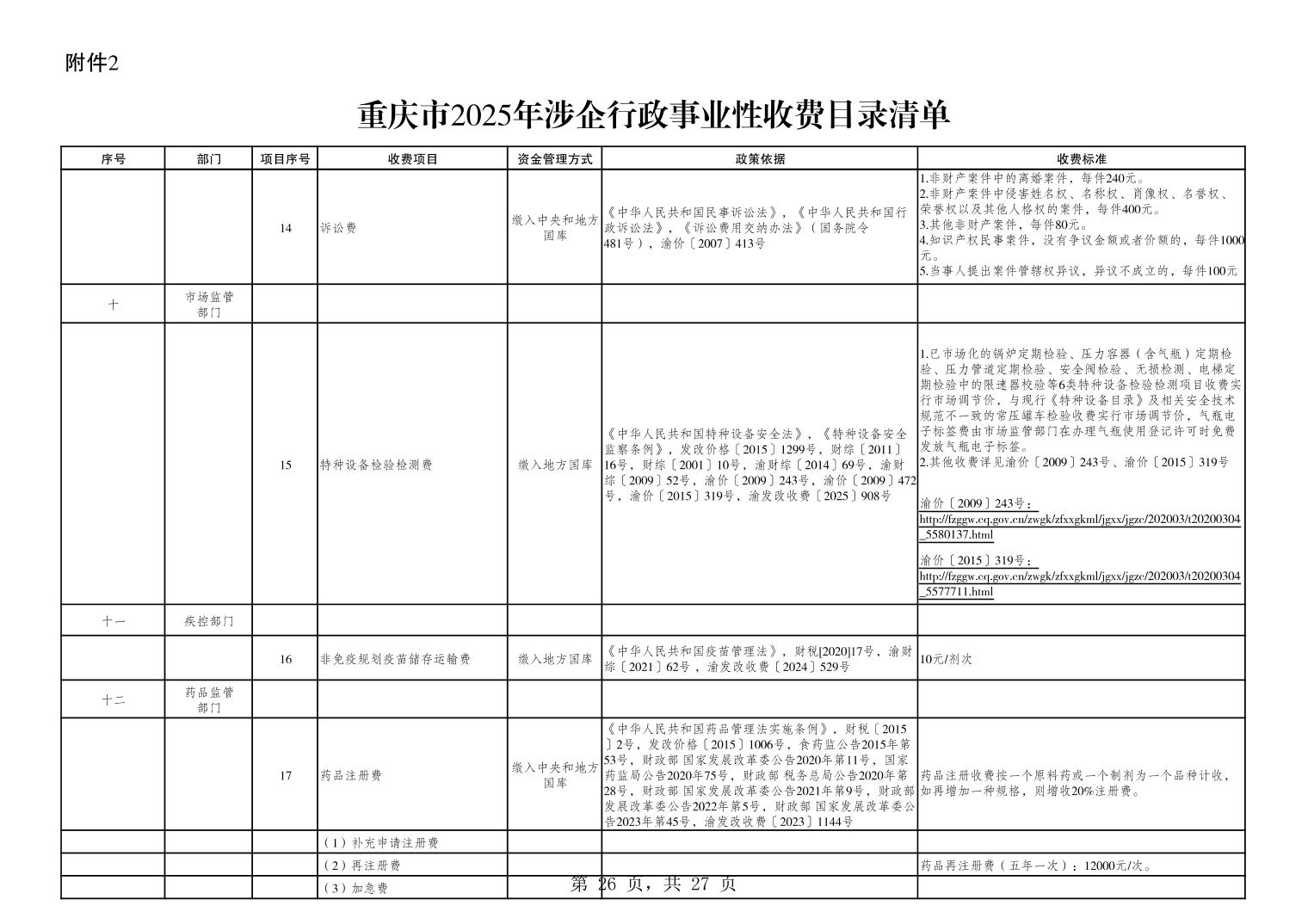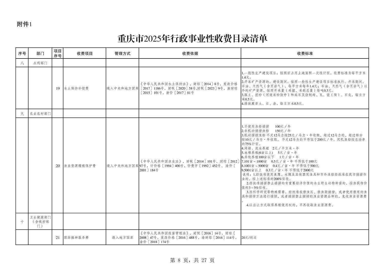 重庆市2025年行政事业性收费目录清单.xls关于公布2025年行政事业性收费目录清单的公告.pdf