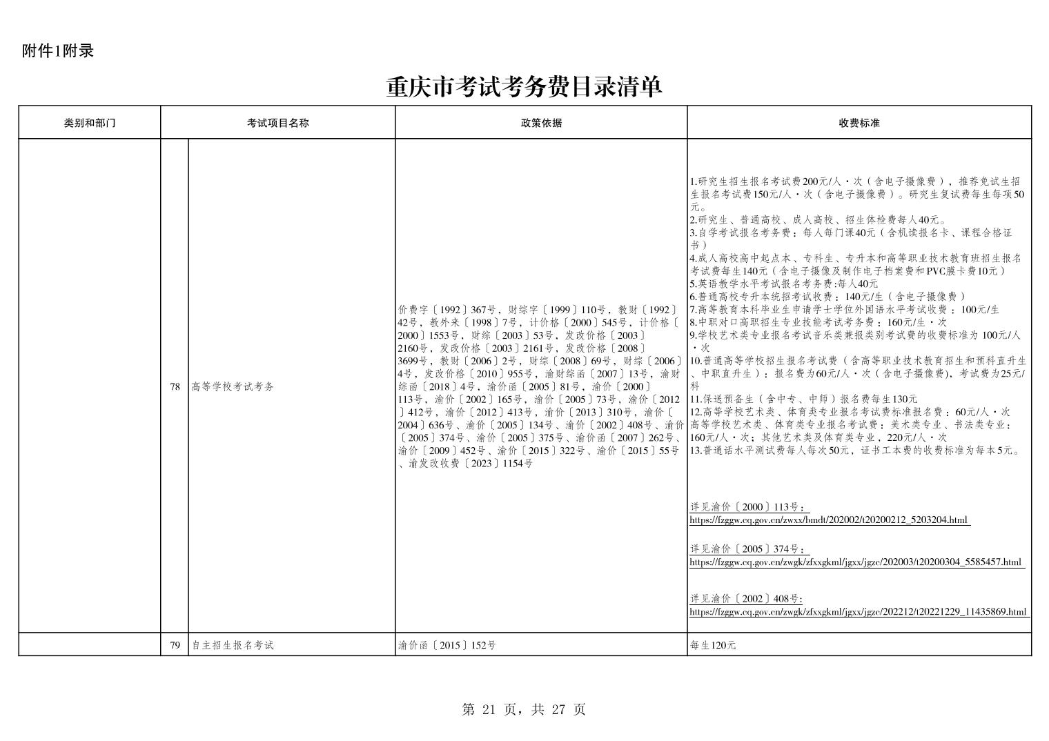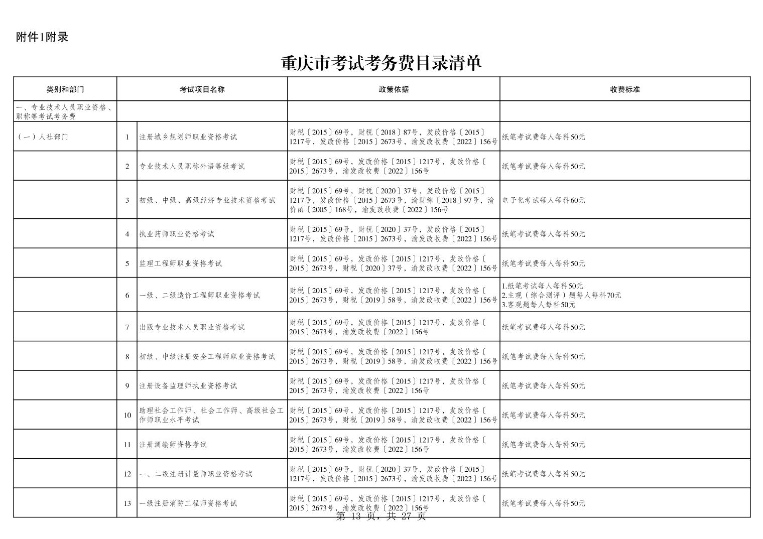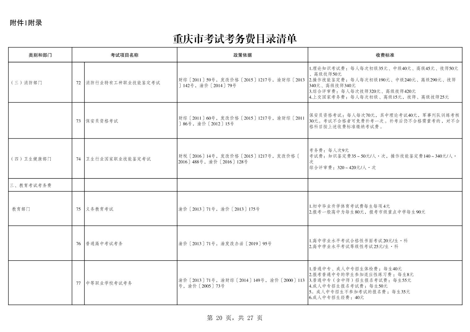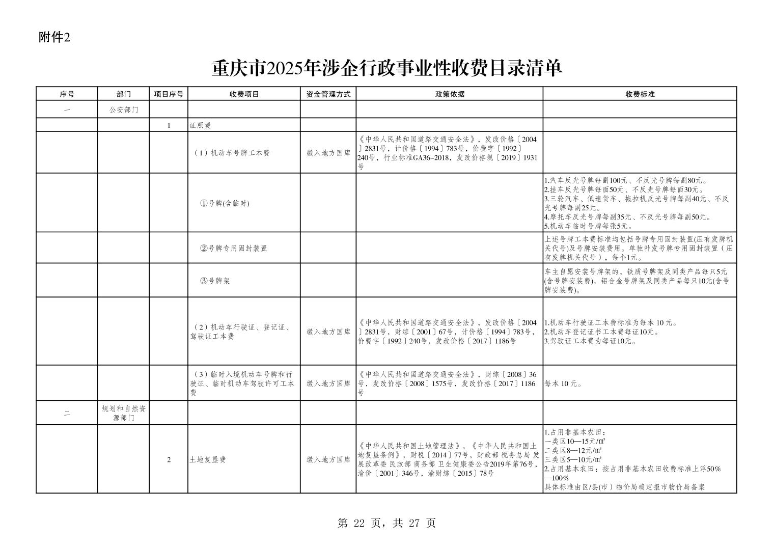 重庆市2025年行政事业性收费目录清单.xls关于公布2025年行政事业性收费目录清单的公告.pdf