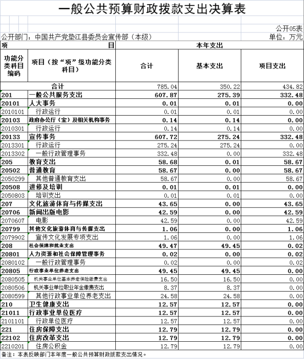 中国共产党垫江县委员会宣传部(本级)2022年度部门决算情况说明