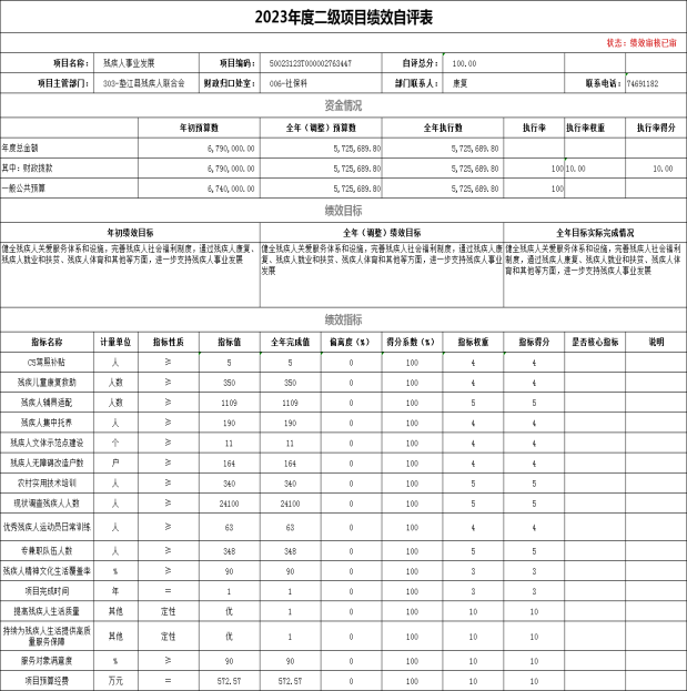 项目支出绩效自评表(二级项目)