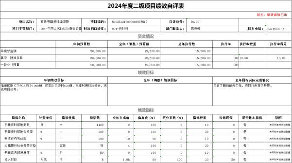 (二)绩效自评结果