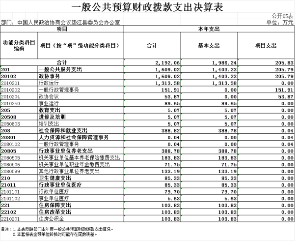 中国人民政治协商会议垫江县委员会办公室2024年度部门决算情况说明(部门)