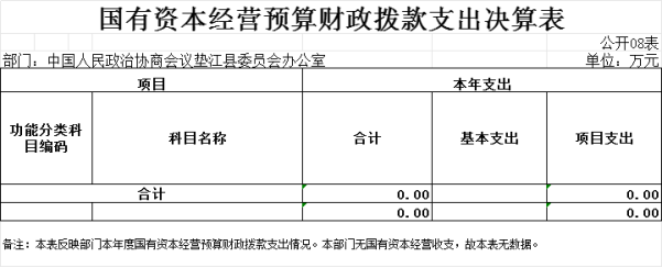(六)国有资本经营预算财政拨款支出决算情况说明