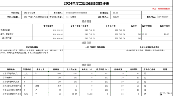 本年度我单位整体绩效自评结果良好。年初设定的绩效指标,绝大部分均能按期完成;但也存在少量问题,主要表现为部分项目进行了预算调整,导致与年初预算数有差异。今后我单位将加强资金预算管理,尽量避免预算与实际支出差异过大;同时,规范资金使用范围,严格按照预算用途使用资金。