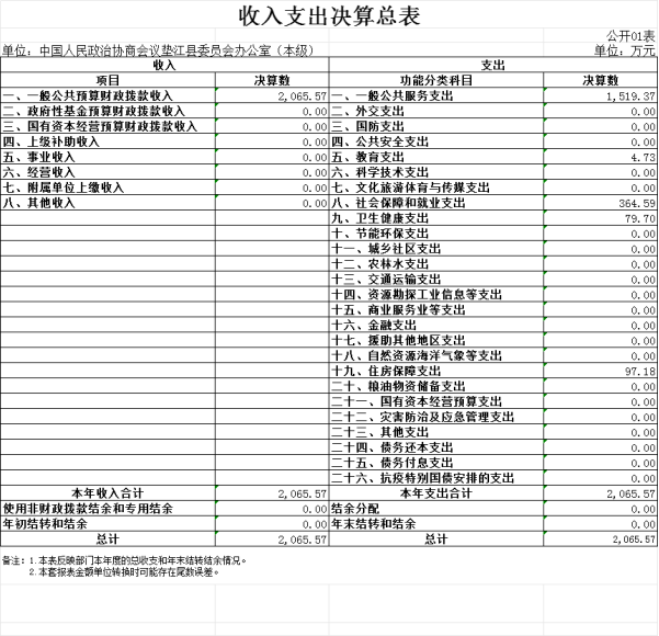 中国人民政治协商会议垫江县委员会办公室2024年度部门决算情况说明(本级)