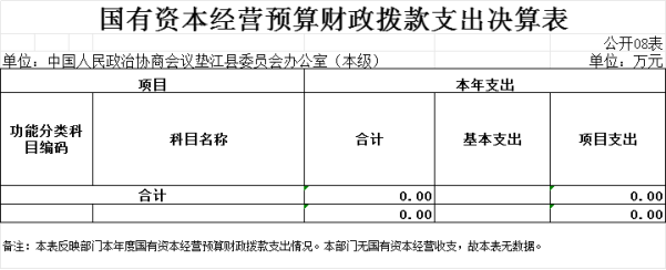 (六)国有资本经营预算财政拨款支出决算情况说明