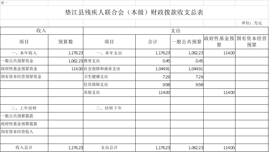 附表:1.垫江县残疾人联合会(本级)财政拨款收支总表