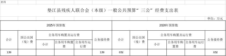 4.垫江县残疾人联合会(本级)一般公共预算“三公”经费支出表