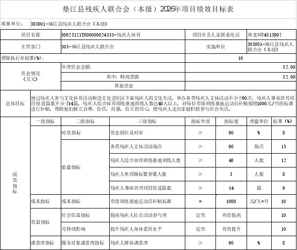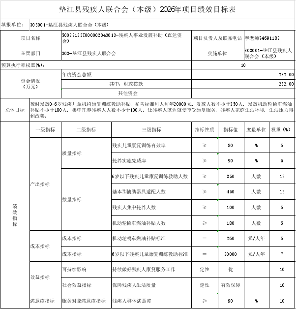 10.垫江县残疾人联合会(本级)2026年项目绩效目标表