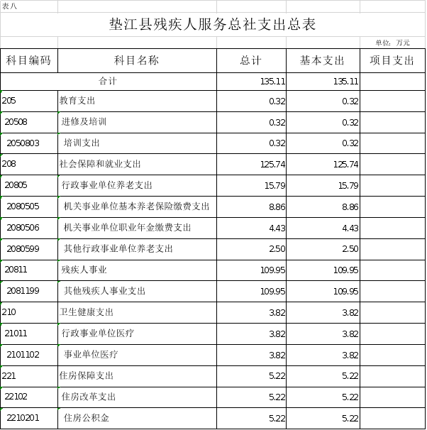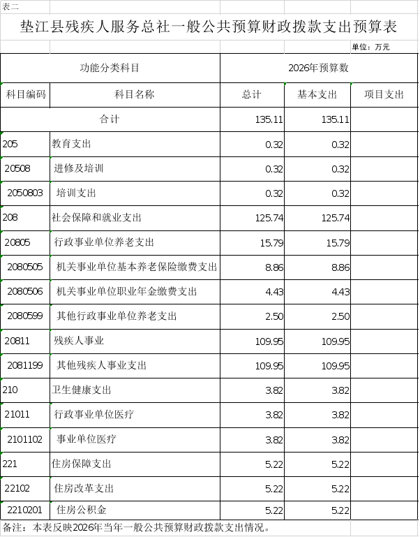 2.垫江县残疾人服务总社一般公共预算财政拨款支出预算表