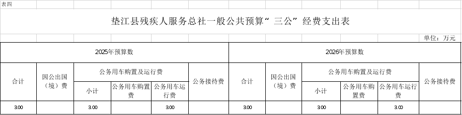 4.垫江县残疾人服务总社一般公共预算“三公”经费支出表