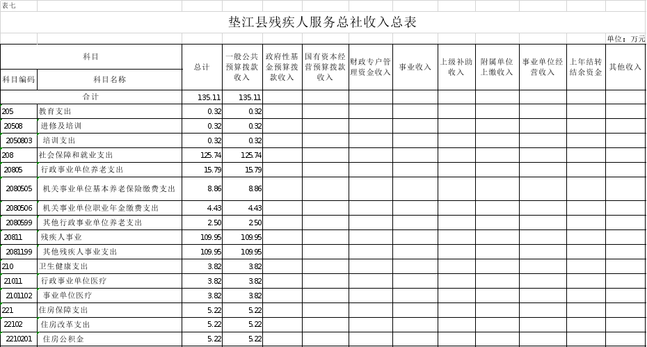 附表:1.垫江县残疾人服务总社财政拨款收支总表