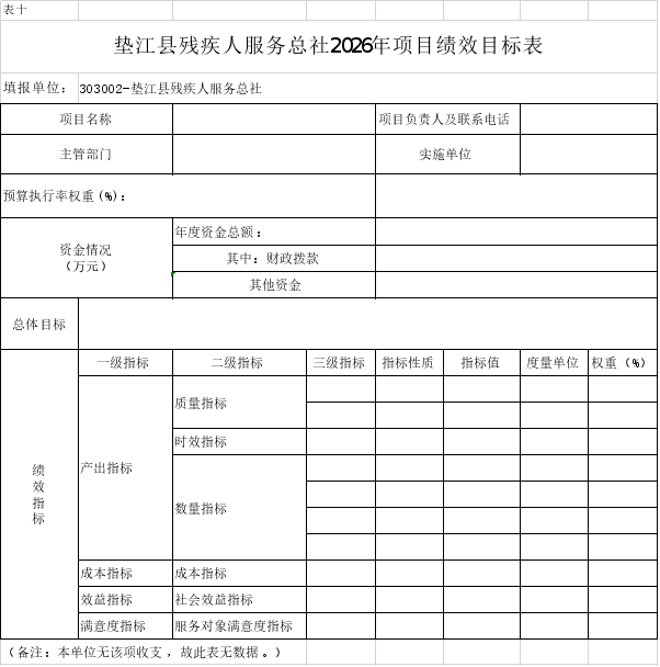 10.垫江县残疾人服务总社2026年项目绩效目标表