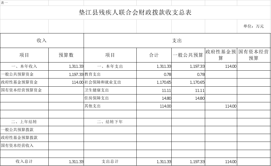 附表:1.垫江县残疾人联合会财政拨款收支总表