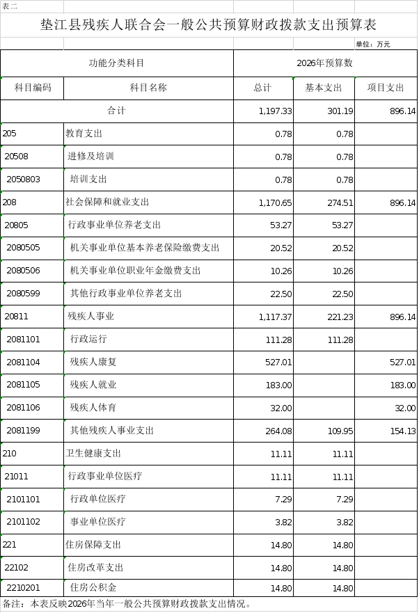 垫江县残疾人联合会2026年部门预算情况说明