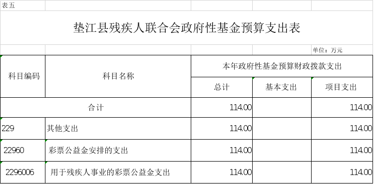 5.垫江县残疾人联合会政府性基金预算支出表