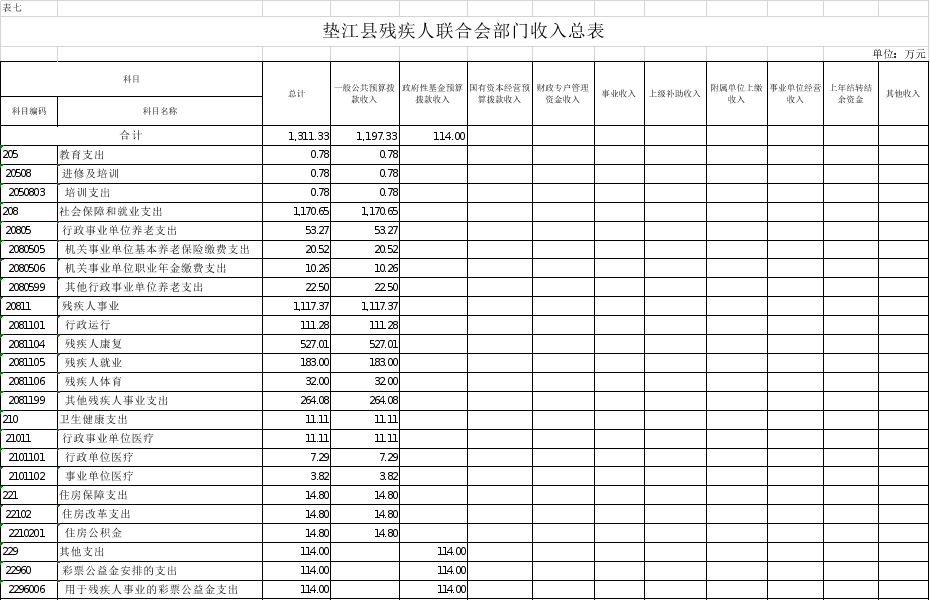 7.垫江县残疾人联合会部门收入总表