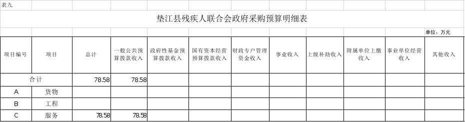 9.垫江县残疾人联合会政府采购明细表