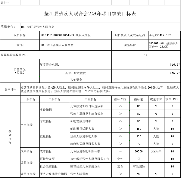 11.垫江县残疾人联合会2026年项目绩效目标表