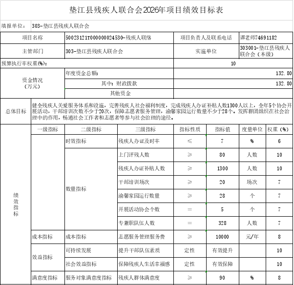 10.垫江县残疾人联合会2026年部门和单位整体绩效目标表