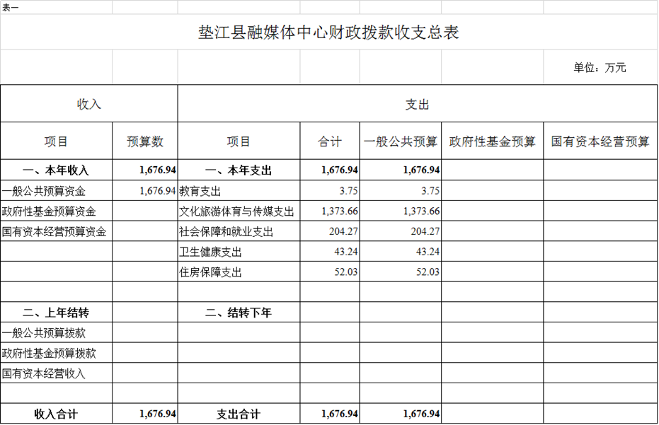 附表:1.垫江县融媒体中心财政拨款收支总表