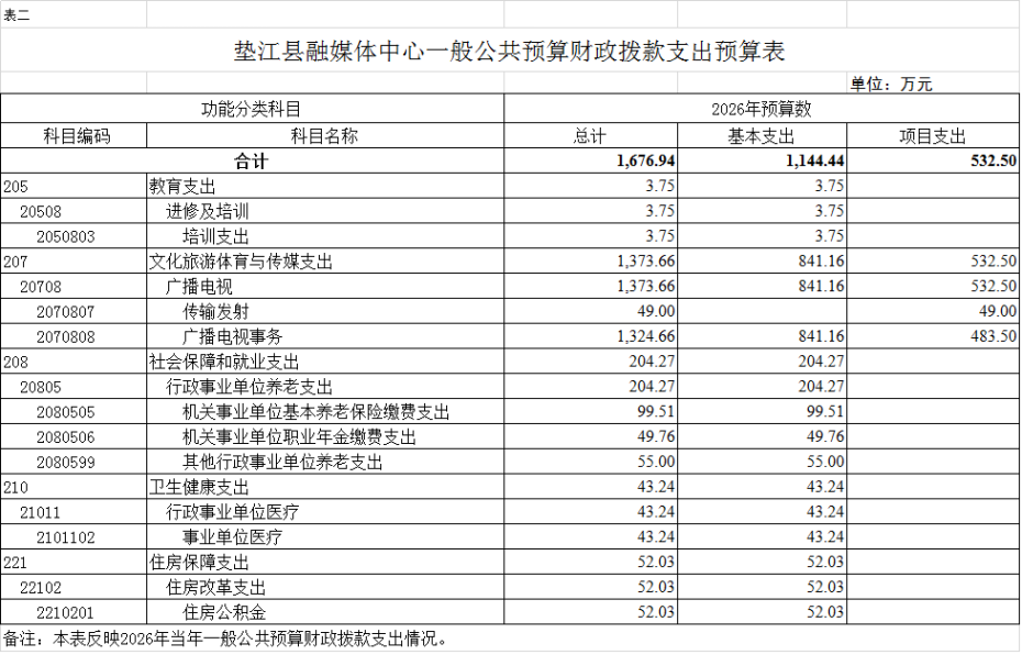 2.垫江县融媒体中心一般公共预算财政拨款支出预算表