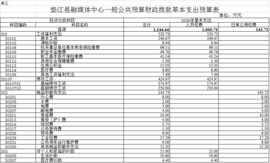 3.垫江县融媒体中心一般公共预算财政拨款基本支出预算表