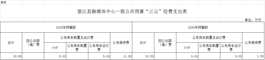4.垫江县融媒体中心一般公共预算“三公”经费支出表