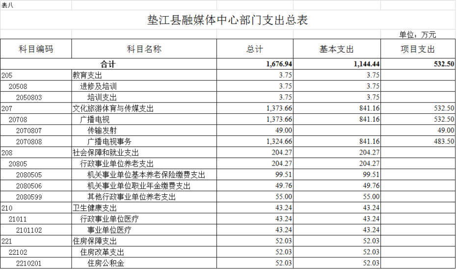 8.垫江县融媒体中心部门支出总表