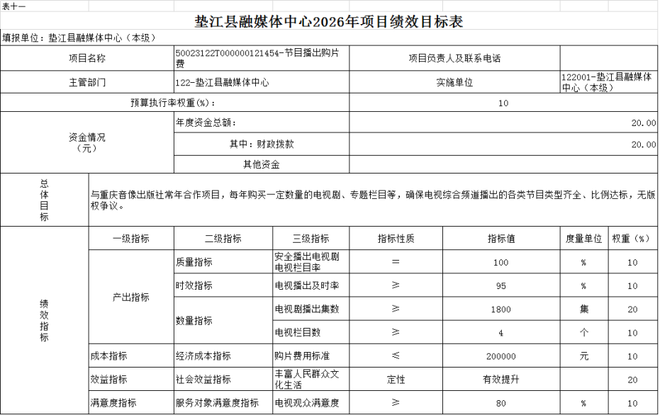 - 垫江县融媒体中心2026年项目绩效目标表