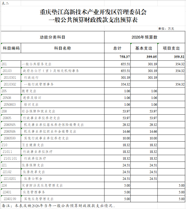 2.重庆垫江高新技术产业开发区管理委员会一般公共预算财政拨款支出预算表