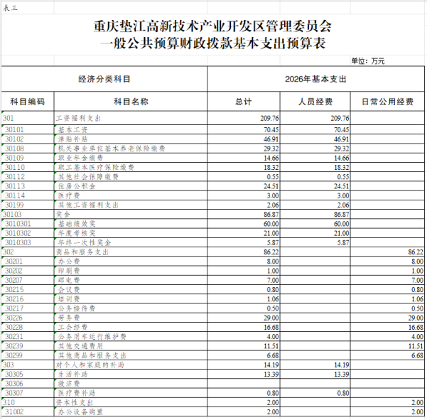 3.重庆垫江高新技术产业开发区管理委员会一般公共预算财政拨款基本支出预算表