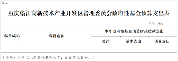 5.重庆垫江高新技术产业开发区管理委员会政府性基金预算支出表