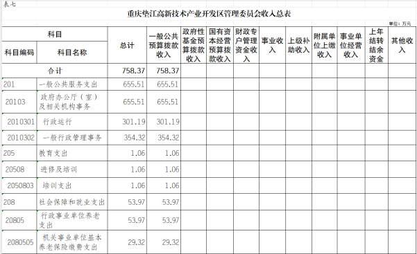 7.重庆垫江高新技术产业开发区管理委员会部门收入总表