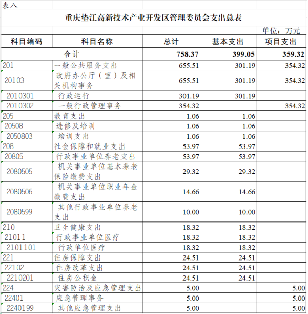 8.重庆垫江高新技术产业开发区管理委员会部门支出总表