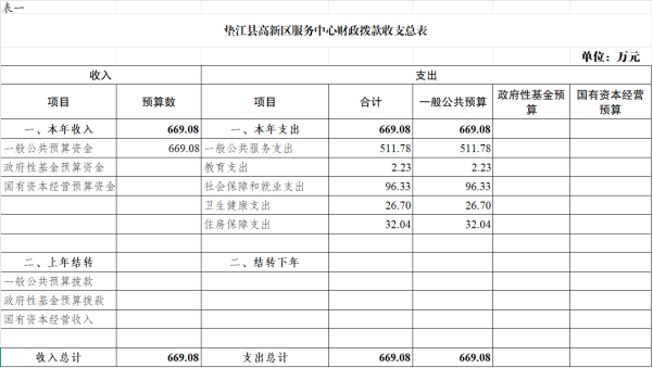 附表:1.垫江县高新区服务中心财政拨款收支总表