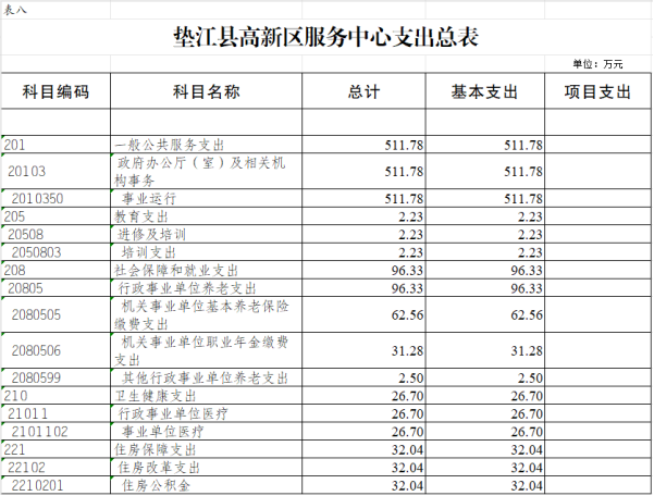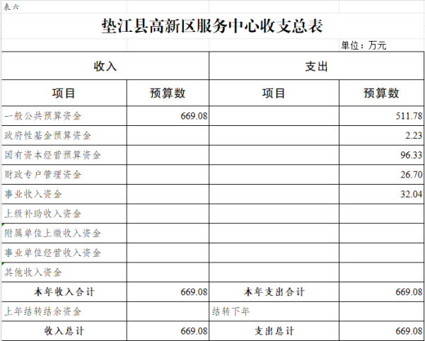 6.垫江县高新区服务中心部门收支总表