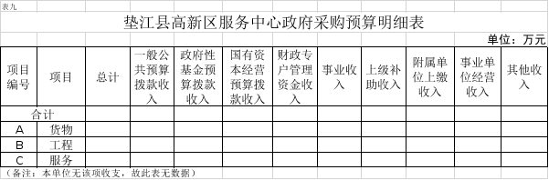9.垫江县高新区服务中心政府采购明细表