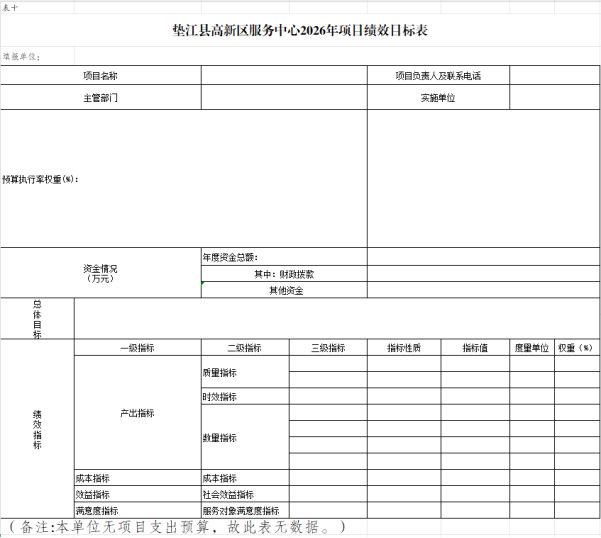 10.垫江县高新区服务中心2026年项目绩效目标表