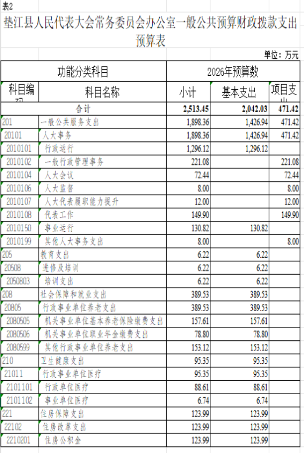 2. 垫江县人民代表大会常务委员会办公室一般公共预算财政拨款支出预算表