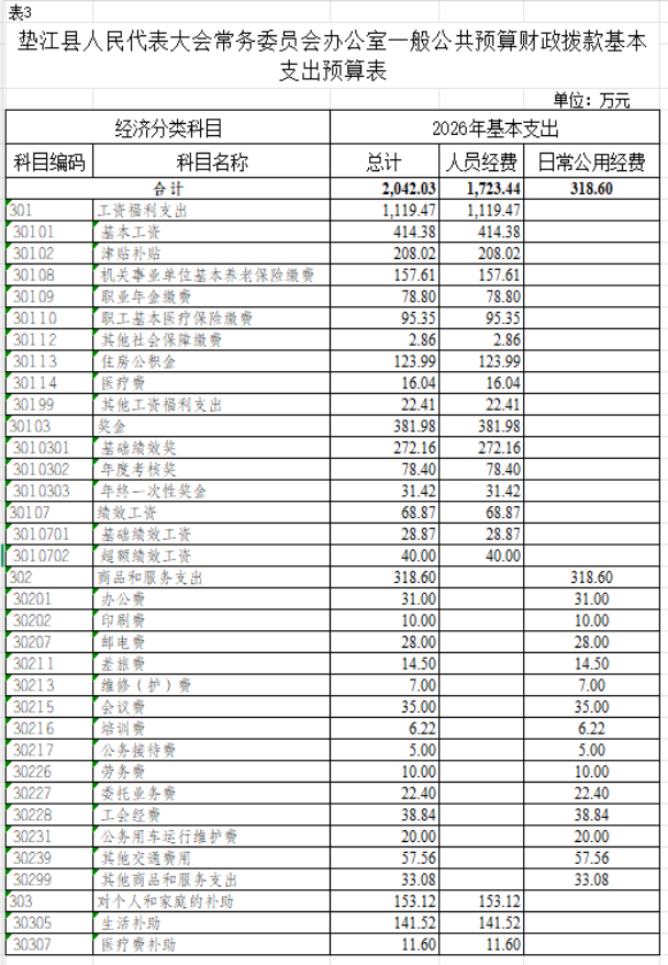 3. 垫江县人民代表大会常务委员会办公室一般公共预算财政拨款基本支出预算表
