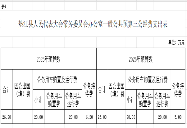 4. 垫江县人民代表大会常务委员会办公室一般公共预算“三公”经费支出表