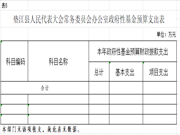 5. 垫江县人民代表大会常务委员会办公室政府性基金预算支出表