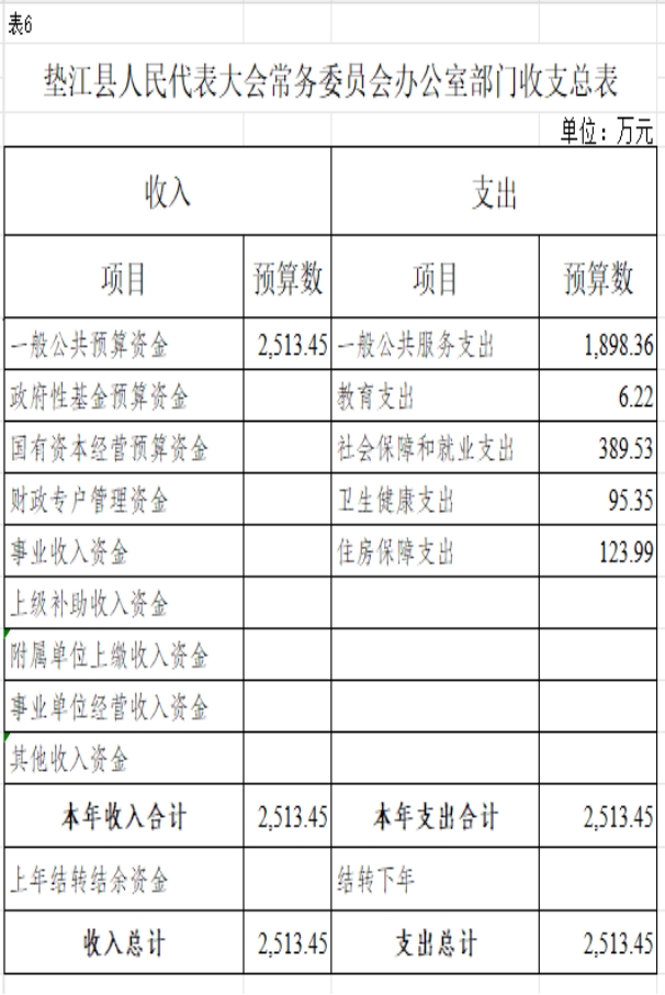 6. 垫江县人民代表大会常务委员会办公室部门收支总表