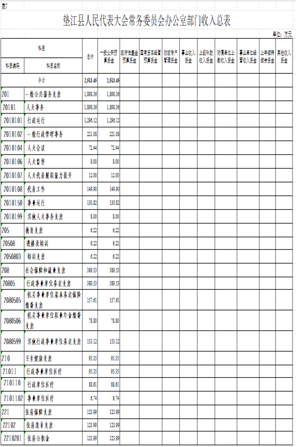 7. 垫江县人民代表大会常务委员会办公室部门收入总表