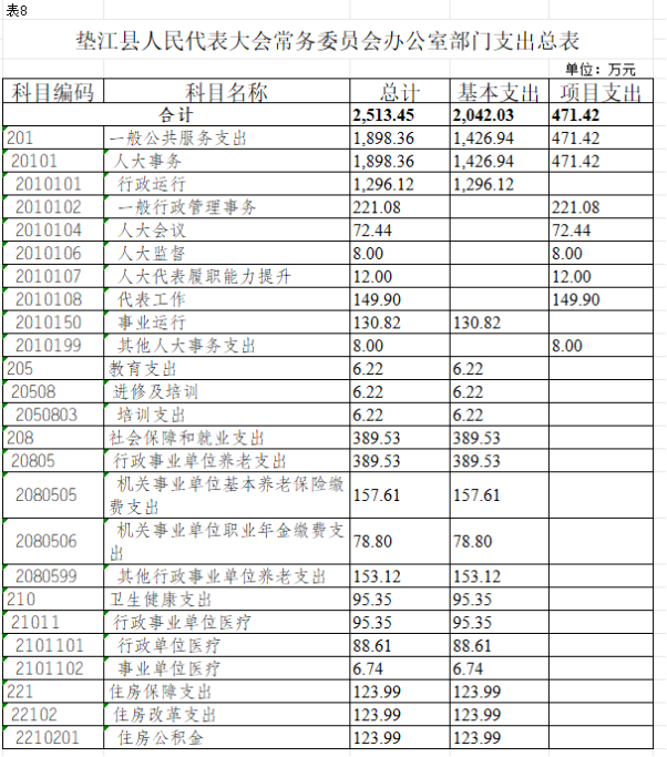 8. 垫江县人民代表大会常务委员会办公室部门支出总表