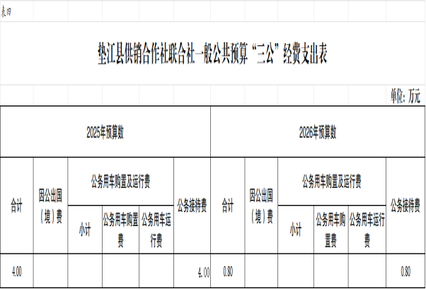 4.垫江县供销合作社联合社一般公共预算“三公”经费支出表