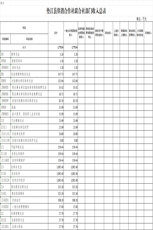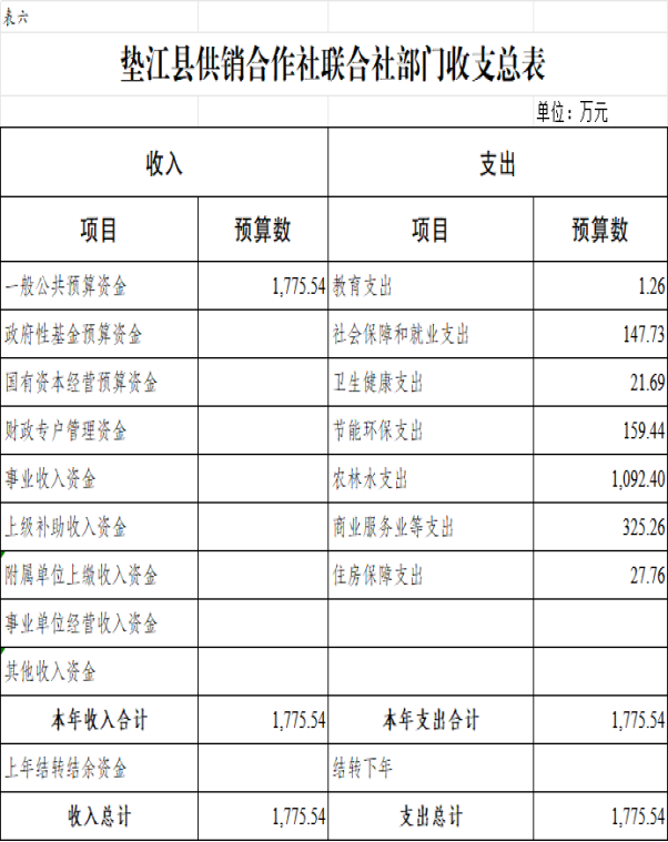 附表:1.垫江县供销合作社联合社财政拨款收支总表